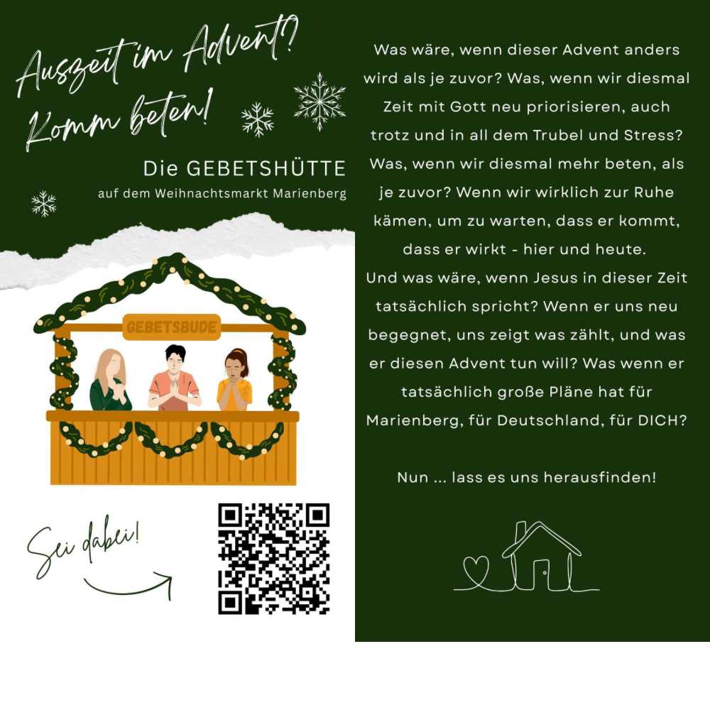 Die Gebetshütte auf dem Weihnachtsmarkt in Marienberg 2. Dezember 2025 | Keine Kommentare Gemeindeinformation, Sonstiges