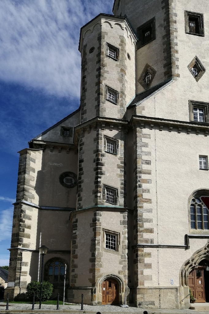 Der Turm, der beim Brand (1610) auch vernichtet wurde, konnte 1612–1614 wiederhergestellt und um 113 Ellen erhöht werden. Er misst heute bis zum Knopf 57 Meter.